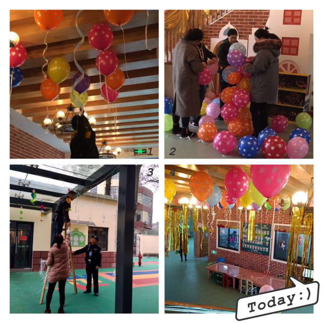 所有老師都齊心協(xié)力,精心布置,從教室到大廳,從墻面到天花板……