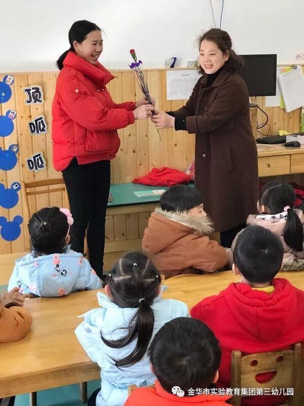 為了讓老師們也更好的感受這溫馨時刻,魅力女王倪園手捧鮮花來到班里,為三園的每一位女神獻花,朵朵鮮花溫暖著心靈,潛藏著微笑,說不盡的甜言蜜語,給予“女神”們快樂,讓“女神”們幸福的像花兒一樣。