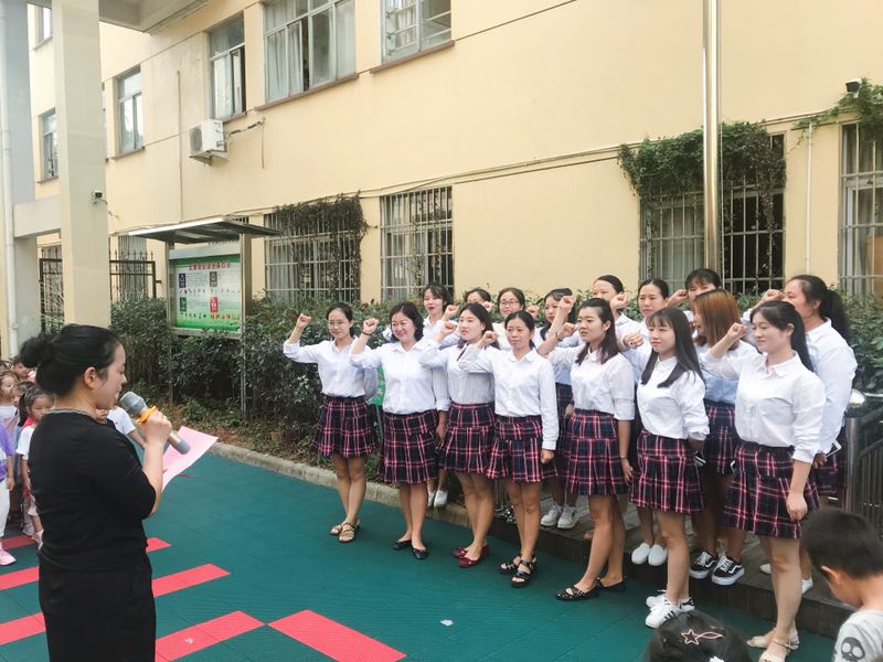 教師節(jié)前夕,市實(shí)幼集團(tuán)第三幼兒園舉行了一次別開生面的教師節(jié)慶;顒——在莊嚴(yán)的國旗下進(jìn)行教師宣誓儀式。